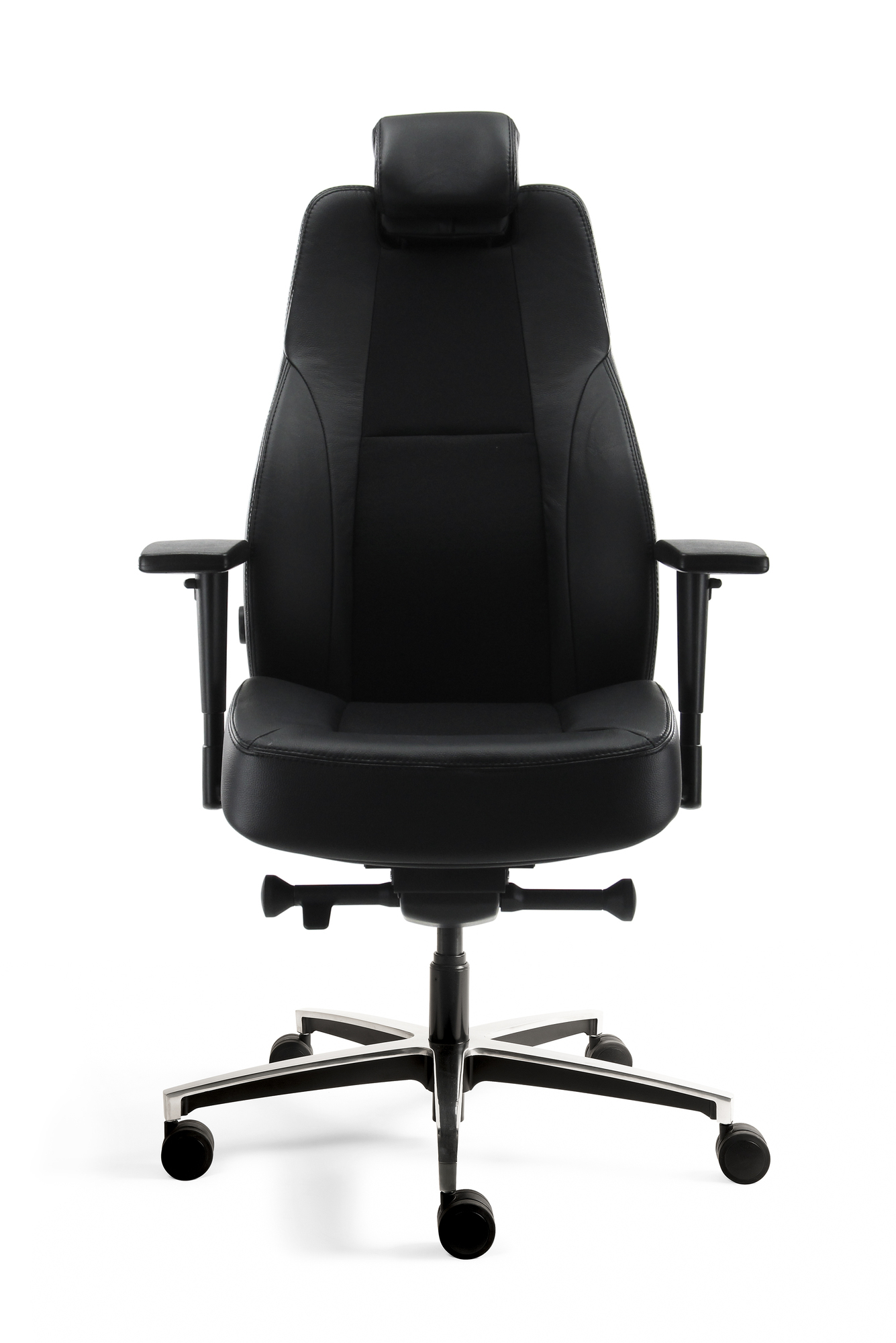 Der 24-Stunden-Chefsessel von Dauphin für die überdurchschnittliche Beanspruchung Drehsessel einsetzbar für Personen bis maximal 150 kg Körpergewicht bei 24/7 Belastung höhenverstellbare Rückenlehne besonders komfortablen Sitz- und Rückenlehnenpolstern Syncro-Quickshift-plus: Synchronbewegung 4fach arretierbar Stufenlose Sitzhöhenverstellung ca. 40-52cm, auf Wunsch 49-64cm Sitztiefenverstellung mittel Schiebesitz für eine individuelle Anpassung an die Oberschenkellänge des Be-Sitzers Dreistufige Sitzneigeverstellung für gesundes, aufrechtes Sitzen Höhen- (10 cm.) und tiefenverstellbare (6 cm.) Armlehnen mit soften PU-Armauflagen Neigbar gelagerte, 6 cm. höhenverstellbare Nackenstütze, Bezug Echtleder schwarz