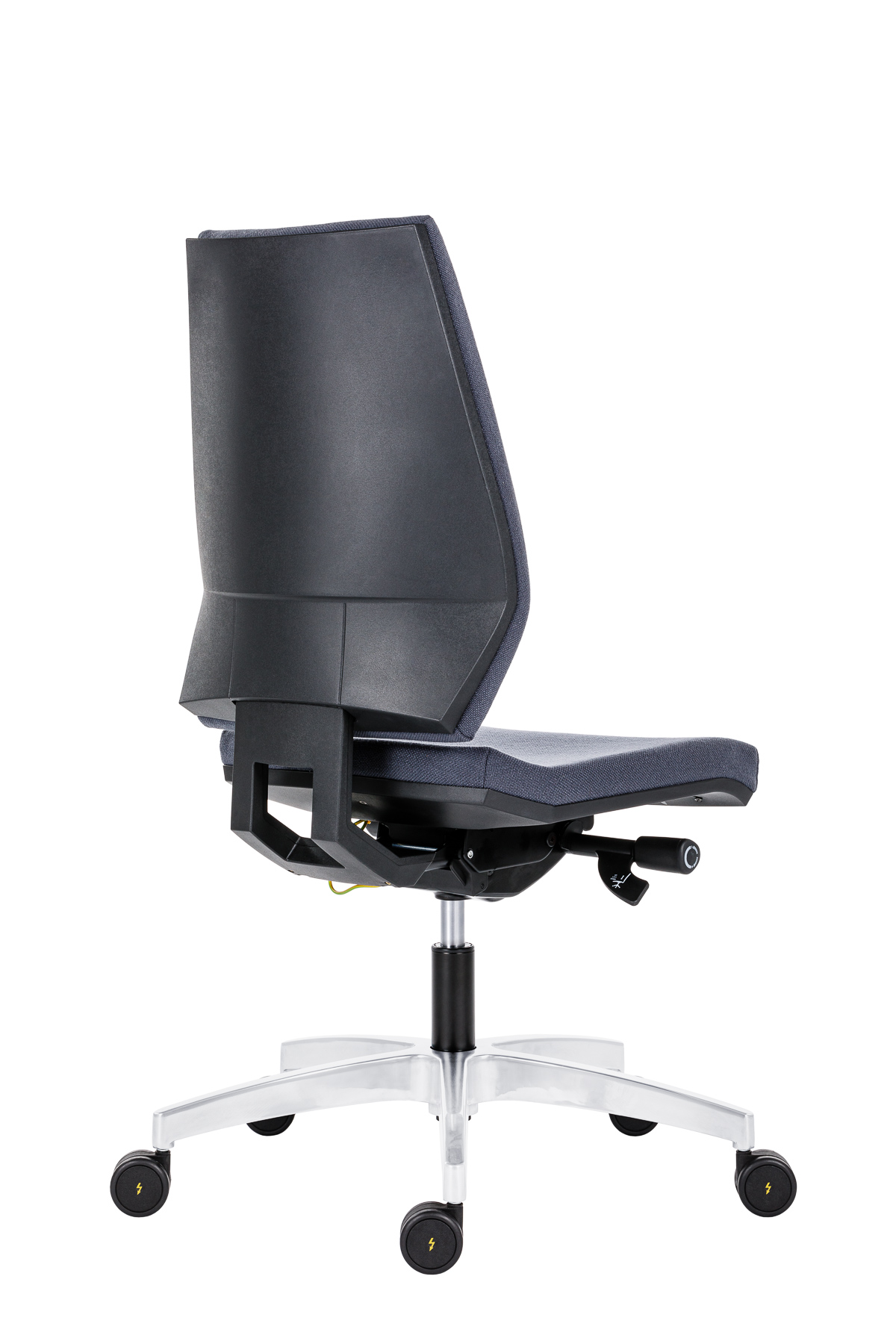 Ergonomischer ESD Arbeitsdrehstuhl mit 100% ESD Sicherheit gemäß DIN EN 61340-5-1, Synchronmechanik und belastbar bis 120 kg.
