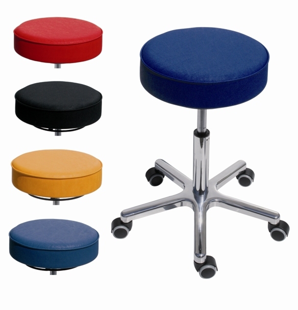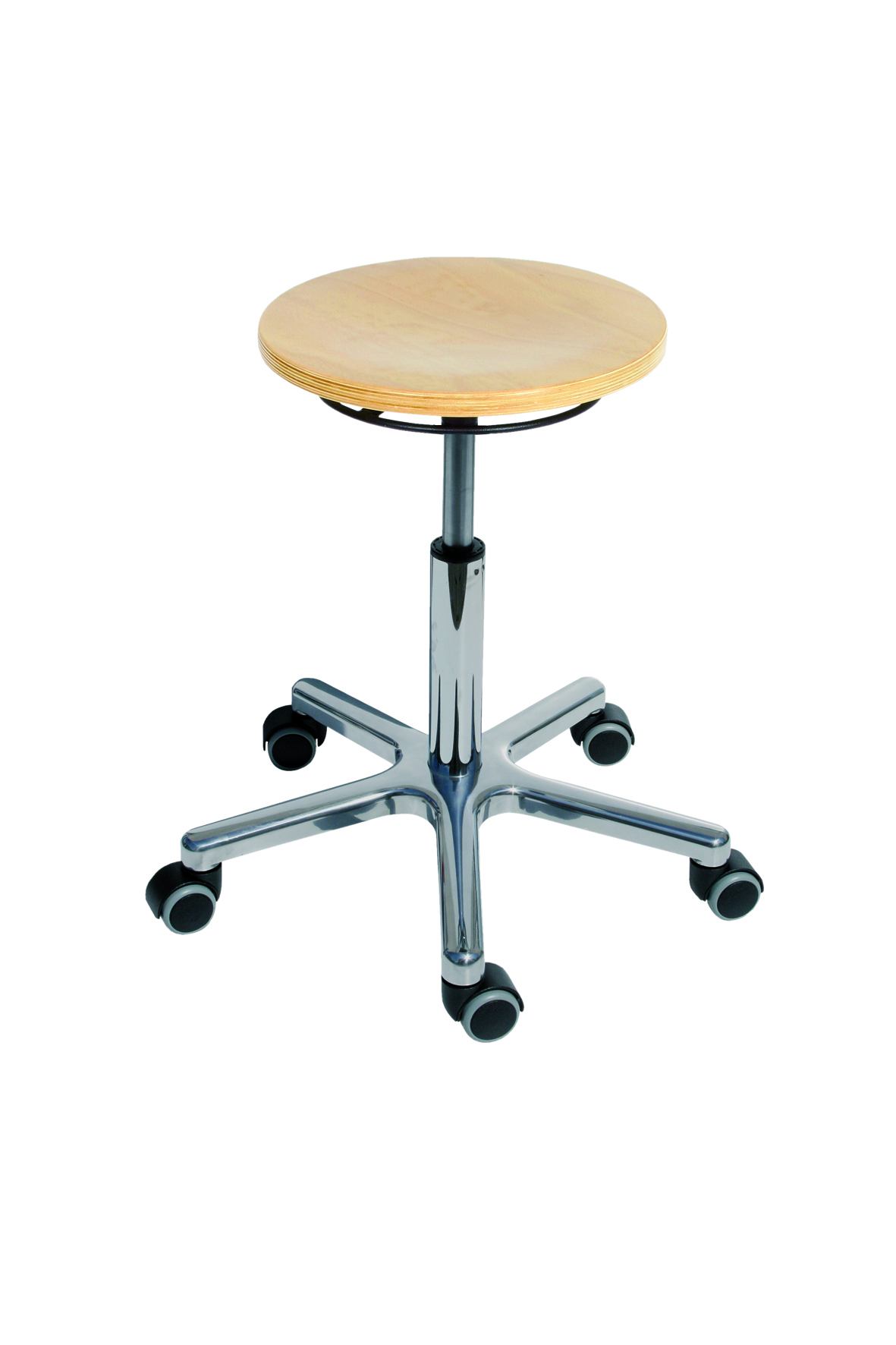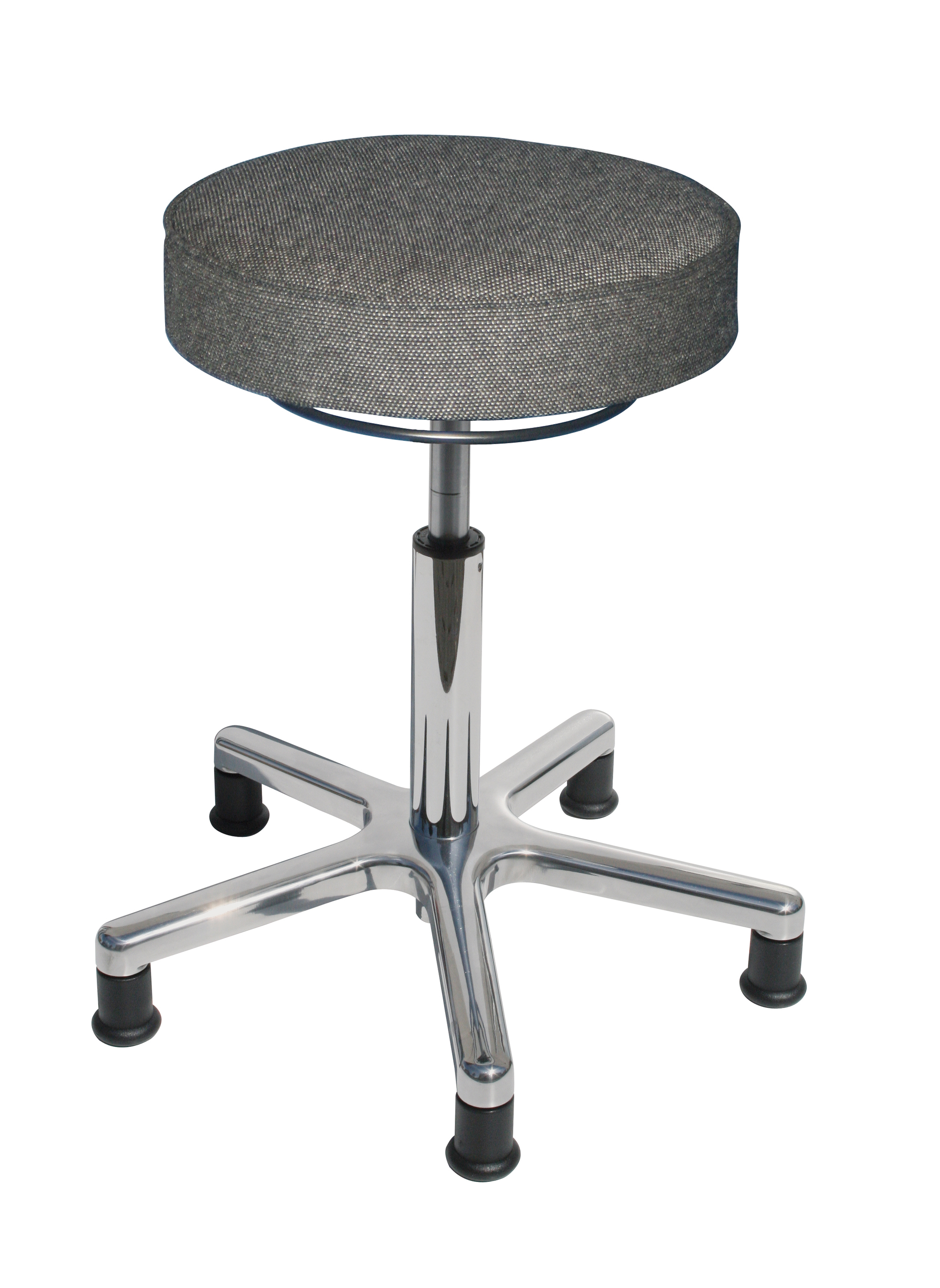 Arbeitshocker mit hochwertigem Aluminium-Fußkreuz mit PU-, Buche- oder Polstersitz, PU-Sitz mit Hebelauslösung, Buche- und Polstersitz mit Ringauslösung. Polstersitz aus 9 cm. hoher Kunstlederpolsterung, in der Farbe anthrazit besteht die Polsterung aus strapazierfähigem Stoff.
