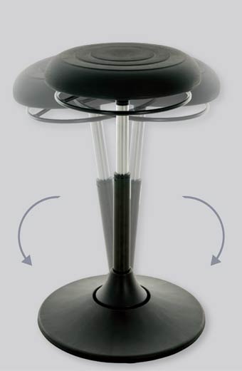 Der multibewegliche Drehhocker von Lotz kann mit unterschiedlichen Komfortsitzen ausgestattet werden und dient zur Entlastung Ihres Körpers bei stehenden Tätigkeiten. Das dynamische Sitzen wird bei diesem Modell nicht durch eine pendelnde Sitzfläche, sondern aufgrund eines kreisbogenförmig um das Fußgelenk schwenkenden Sitzes ermöglicht. Der Hocker schwingt in alle Richtungen mit und passen sich dadurch Ihrer Körperhaltung optimal an. So bleiben Sie in Bewegung und erhöhen dadurch Ihre Leistungsfähigkeit und Ausdauer!