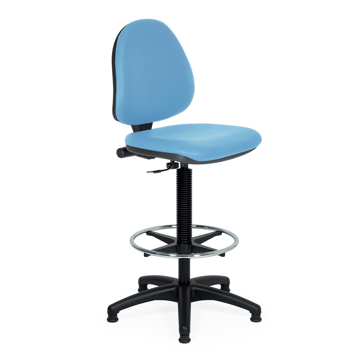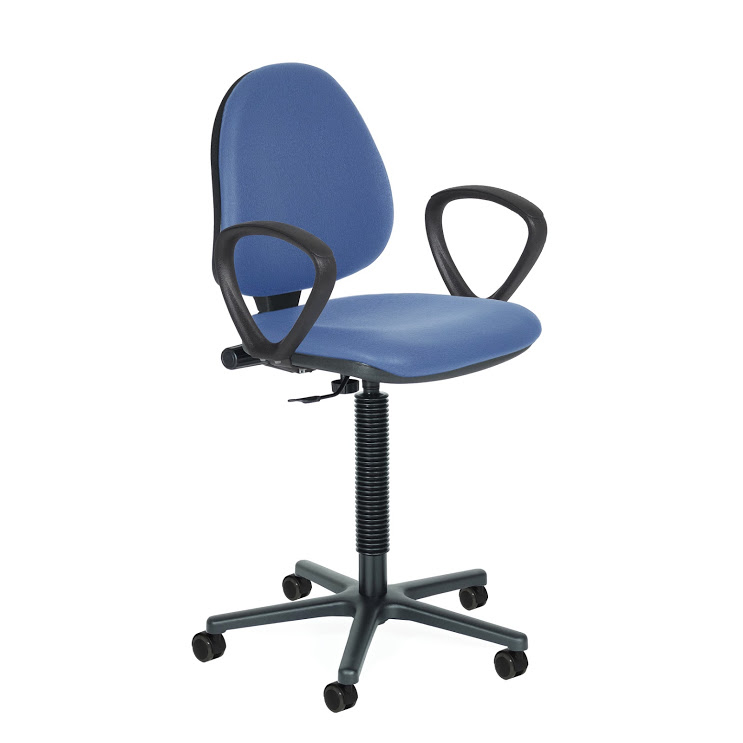 Optional mit Armlehnen, höherer Gasfeder, Fußauflagenring und Gleitern: der absolute Verkaufsschlager unter den Arbeitsdrehstühlen mit körpergerechter Sitz- und Rückenpolsterung, schwarz pulverbeschichtetes Aluminiumfußkreuz, Sitzhöhenverstellung um ca. 12 cm., Rückenneigeverstellung (20°) über Handrad regulierbar und stufenlos arretierbar, Rückenhöhenverstellung (6cm.) über Telskopschiene, reguliert über Handrad, Tiefenverstellung der Rückenlehne (5 cm.) zur Anpassung der Sitztiefe.