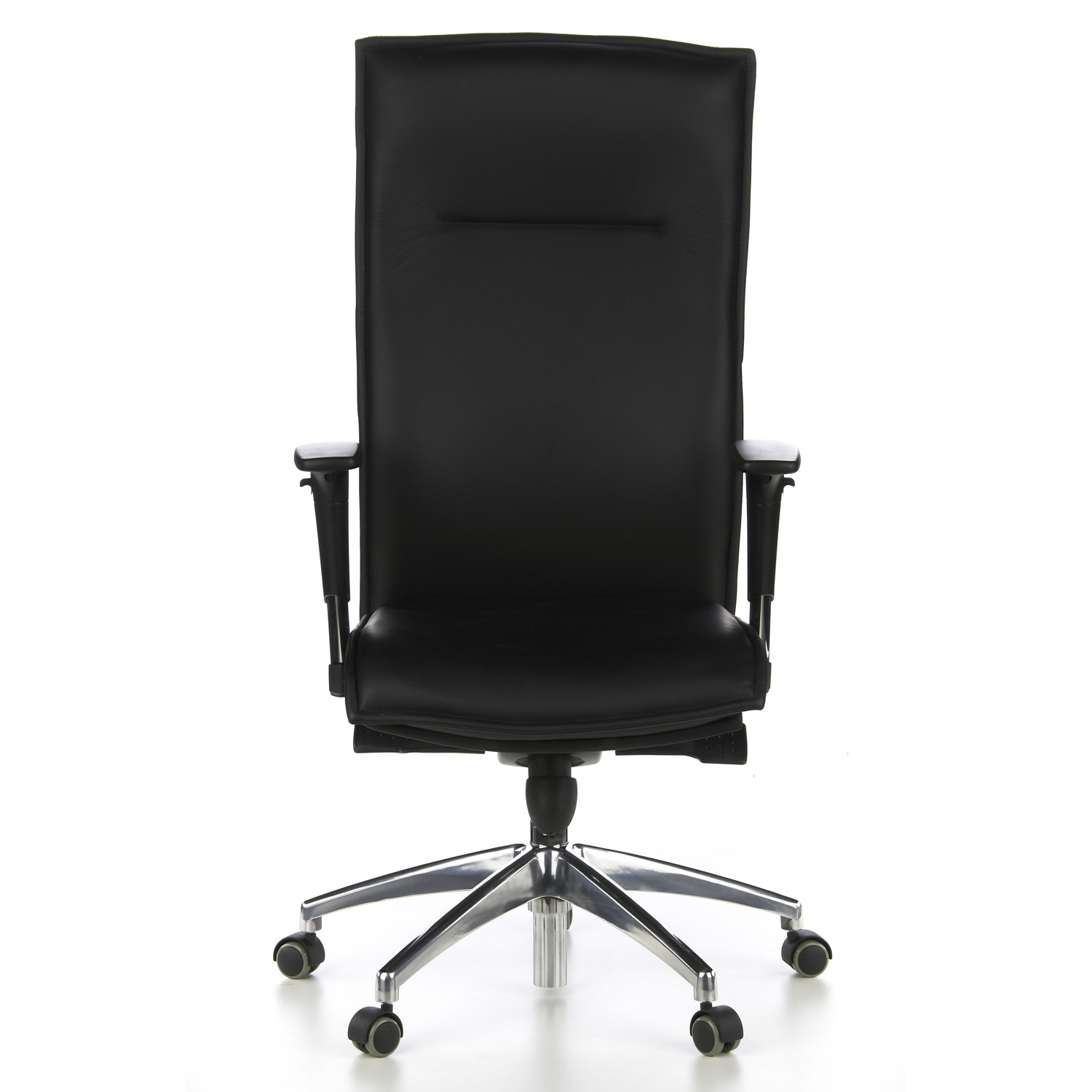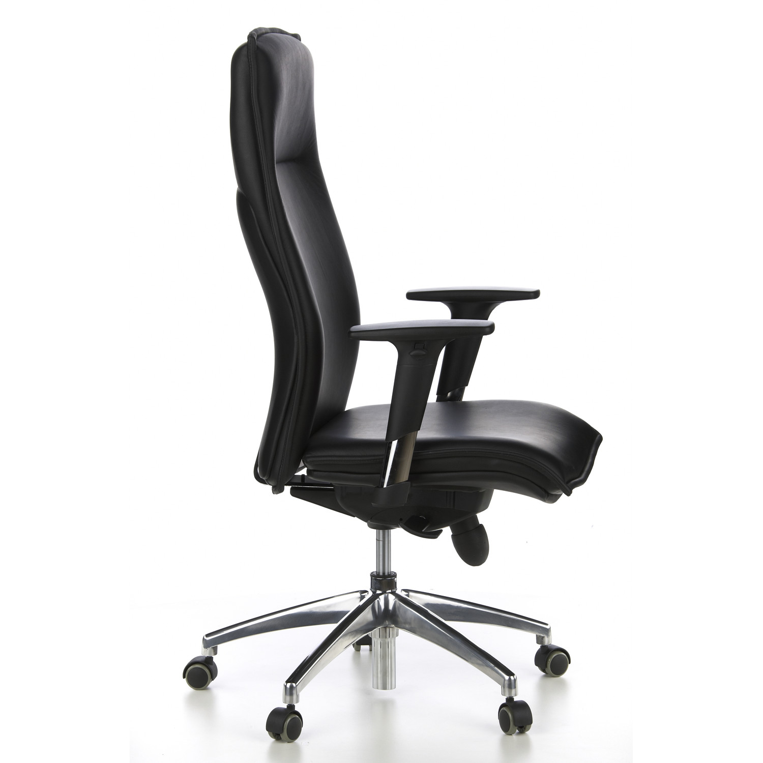 Topstar Chairman X Leder-Chefsessel, schwarz, mit Armlehnen EXKLUSIVER DESIGN-CHEFSESSEL IN FEINEM RINDsLEDER ALS HOCHLEHNER Rückenlehne mit eingearbeiteter Lendenwirbelstütze, horizontal mehrfach abgesteppt, in echtem Leder bezogen (Lehnenrückseite und Seitenteile in farbgleichem Kunstleder) Fusskreuz Aluminium poliert Stufenlose Sitzhöhenverstellung mit Top-Lift  Bequemer Muldensitz mit komfortabler Knierolle, quer abgesteppt, in echtem Leder bezogen (Seitenteile in farbgleichem Kunstleder) Komfortable Synchron-Mechanik zur synchronen Verstellung von Sitz- und Rückenlehnenneigung, 4-fach arretierbar, Federkraft individuell auf das Körpergewicht einstellbar Flügelarmlehnen aus verchromtem Stahl mit Leder Armauflagen lastabhängig gebremste Sicherheitsdoppelrollen für Teppichböden max: Nutzergroesse: 1,92 m max. Nutzergewicht: 110 kg Nutzungsdauer/Tag: 8 Stunden 3 Jahre Herstellergarantie