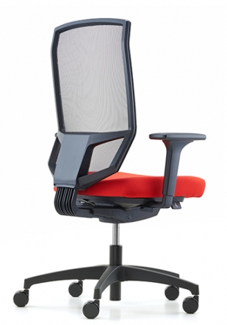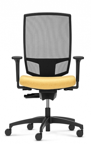 Stilo ES operator mit Polster- oder Netzrückenlehne und Syncro-3D-Balance-Technik. Sitz und Rückenlehne folgen den Bewegungen des Sitzenden synchron im richtigen Winkelverhältnis. Stufenlose, unmittelbar spürbare Einstellung des Rückenlehnengegendrucks (= Tension) für ca. 50–125 kg Körpergewicht. Synchronbewegung stufenlos arretierbar mit zusätzlicher automatischer Neigung des gesamten Stuhloberteils nach vorn (bis -8°) und zu beiden Seiten (+/- 6°). Optional mit fixierbarer 3D-Balance-Technik.