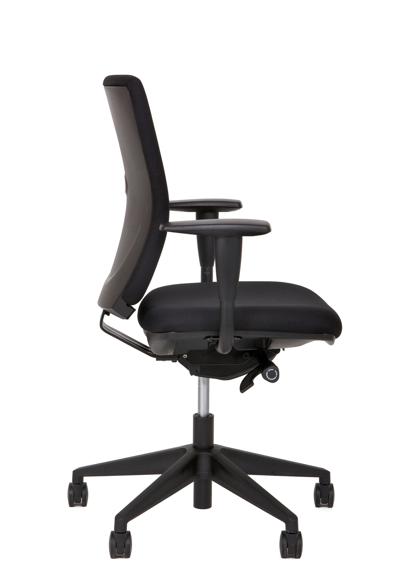 Der Economy-Drehstuhl A320 GS verfügt über eine Synchronmechanik mit Gewichtsregulierung, eine um 6 cm. verstellbare Sitztiefe und höhen- sowie breitenverstellbare Armlehnen mit Klickverstellung. Der bequeme Sitz und die gepolsterte Rückenlehne werden durch ein Design-Gestell aus Kunststoff mit schwarzer Gasfeder abgerundet.