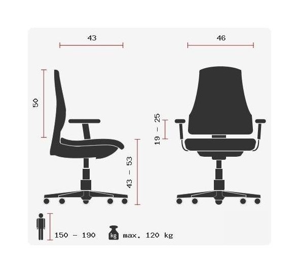 - Für Körpergrösse bis 1,85 m und bis zu 8 Stunden Sitzdauer empfohlen
