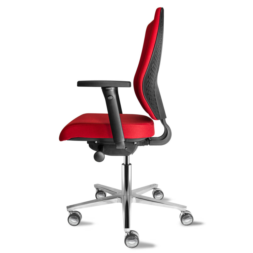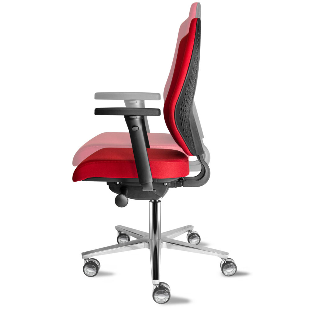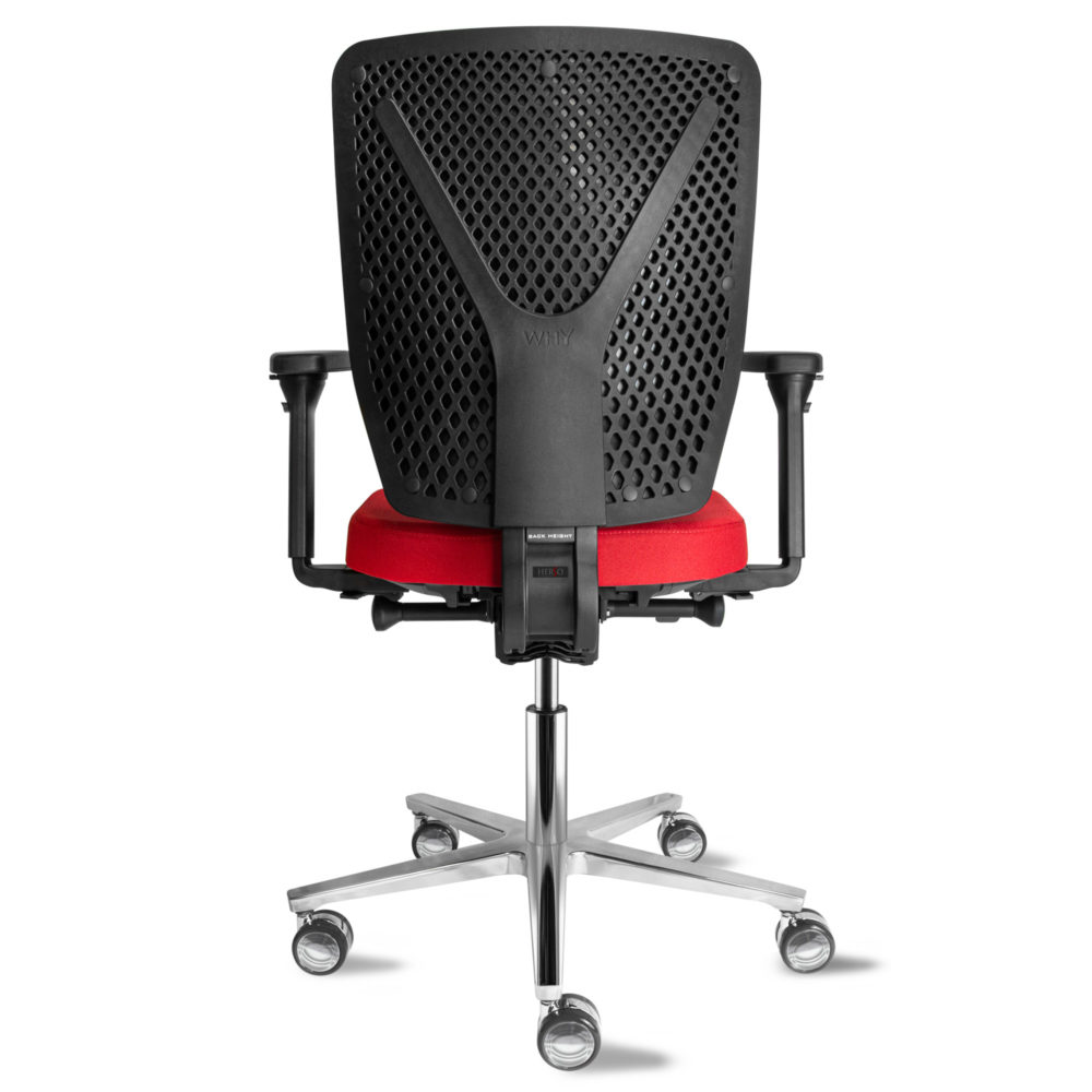Der Bürostuhl WHY! aus der deutschen Manufaktur HerSo ist ein absoluter Allrounder und erfüllt alle Ansprüche an einen ergonomischen Drehstuhl, der dynamisches Sitzen fördert. Es besitzt eine Synchron-Mechanik, eine Sitztiefenverstellung und eine flexible 3D-Rückenlehne mit integrierter Lordosenunterstützung. Per Schnellspanner können die Armlehnen in der Breite verstellt werden, die stufenlose Sitzhöhenverstellung verfügt über eine komfortable Tiefenfederung. Er verbindet Robustheit mit dem Sitzkomfort und der Flexibilität eines ergonomischen und rückenschonenden Bürostuhls. Optional mit höhen- und breitenverstellbaren Armlehnen und per Luftkammersystem verstellbarer Lordosenstütze.