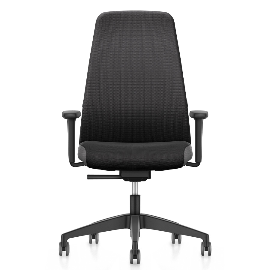 EVERYbody EVERYtime EVERYwhere EVERYis1, der Drehstuhl von Interstuhl mit hoher Rückenlehne, der nicht nur im Design sondern auch in der Funktion keine Kompromisse kennt. Ausgestattet mit einer verstellbarer Lordosenstütze, Autolift-Mechanik, die sich mit automatischer Gewichtsregulierung auf die Größe und das Gewicht des Nutzers einstellt, einer Sitztiefenverstellung und breiten- und höhenverstellbaren Armlehnen mit weicher Auflage ist er ein hoch qualitativer Allrounder, der in nur wenigen Tagen lieferbar ist. Der Klassiker erleichtert den Arbeitsalltag und fördert erfolreiches Arbeiten. Vor allem bei langen Sitzphasen unterstützt sein hoher Rücken den Besitzer und bietet beste Voraussetzungen für gesundes Sitzen. Gepolstert ist das schnell lieferbare Multitalent in der Designfarbe graphitschwarz.