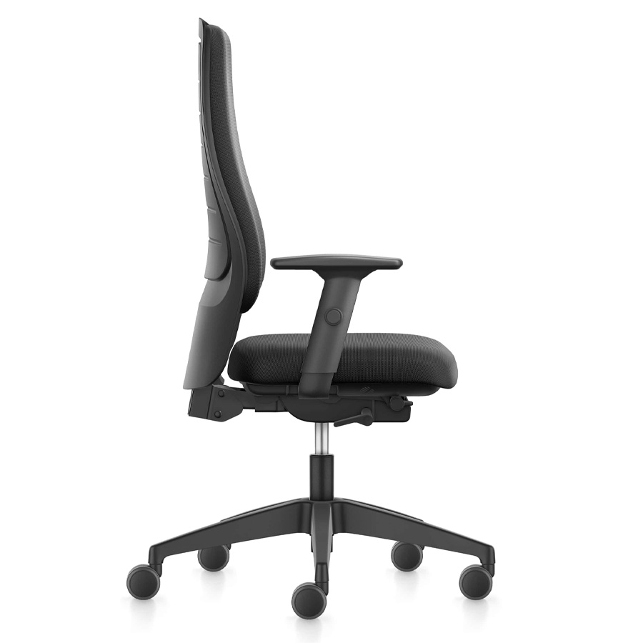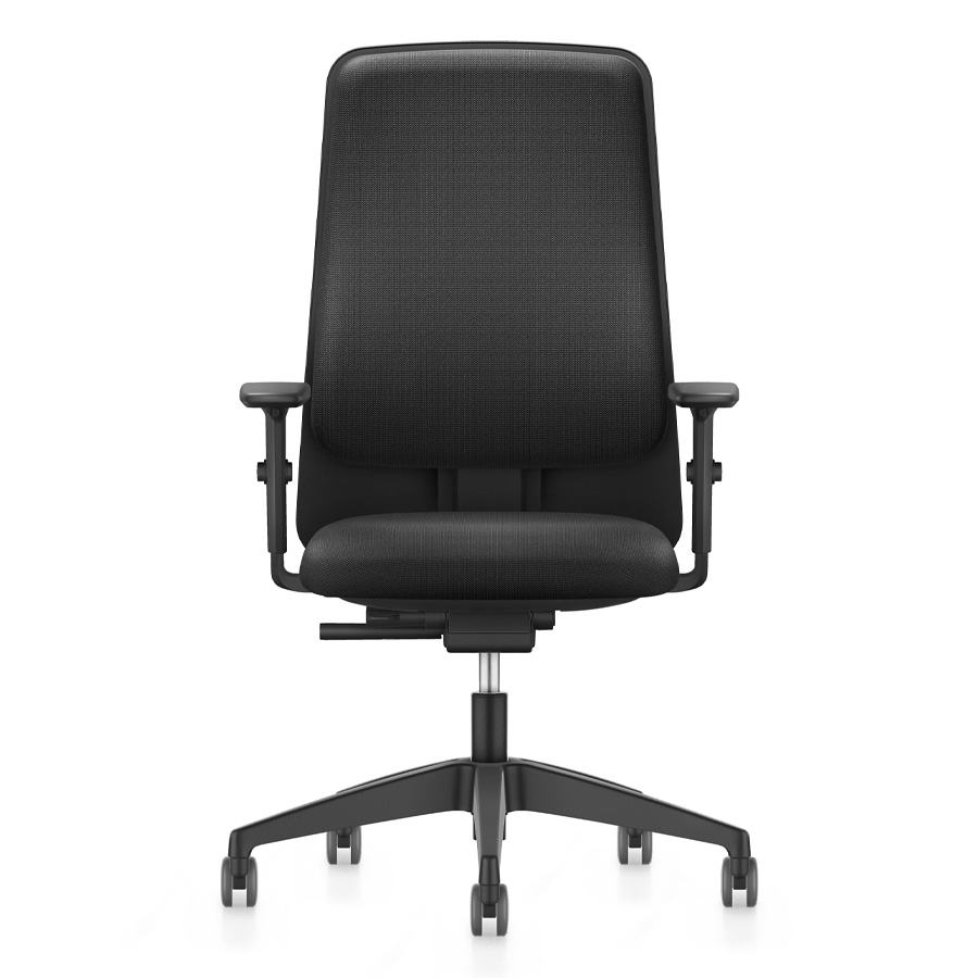Drehsessel mit hoher Rückenlehne, der nicht nur im Design sondern auch in der Funktion keine Kompromisse kennt. Ausgestattet mit einer integrierten Lordosenstütze, Autolift-Mechanik, die sich mit automatischer Gewichtsregulierung auf die Größe und das Gewicht des Nutzers einstellt, einer Sitztiefen- sowie Sitzneigeverstellung und breiten-, -höhen und tiefenverstellbaren Armlehnen mit weicher Auflage ist er ein hoch qualitativer Allrounder, der in nur wenigen Tagen lieferbar ist. Der Klassiker erleichtert den Arbeitsalltag und fördert erfolreiches Arbeiten. Der Stuhl von mehreren wechselnden Personen benutzt werden, ohne dass die Gewichtsregulierung immer wieder neu eingestellt werden muss. Die Rückstellkraft der Synchronmechanik passt sich automatisch an. Gepolstert ist das schnell lieferbare Multitalent in der Designfarbe graphitschwarz.