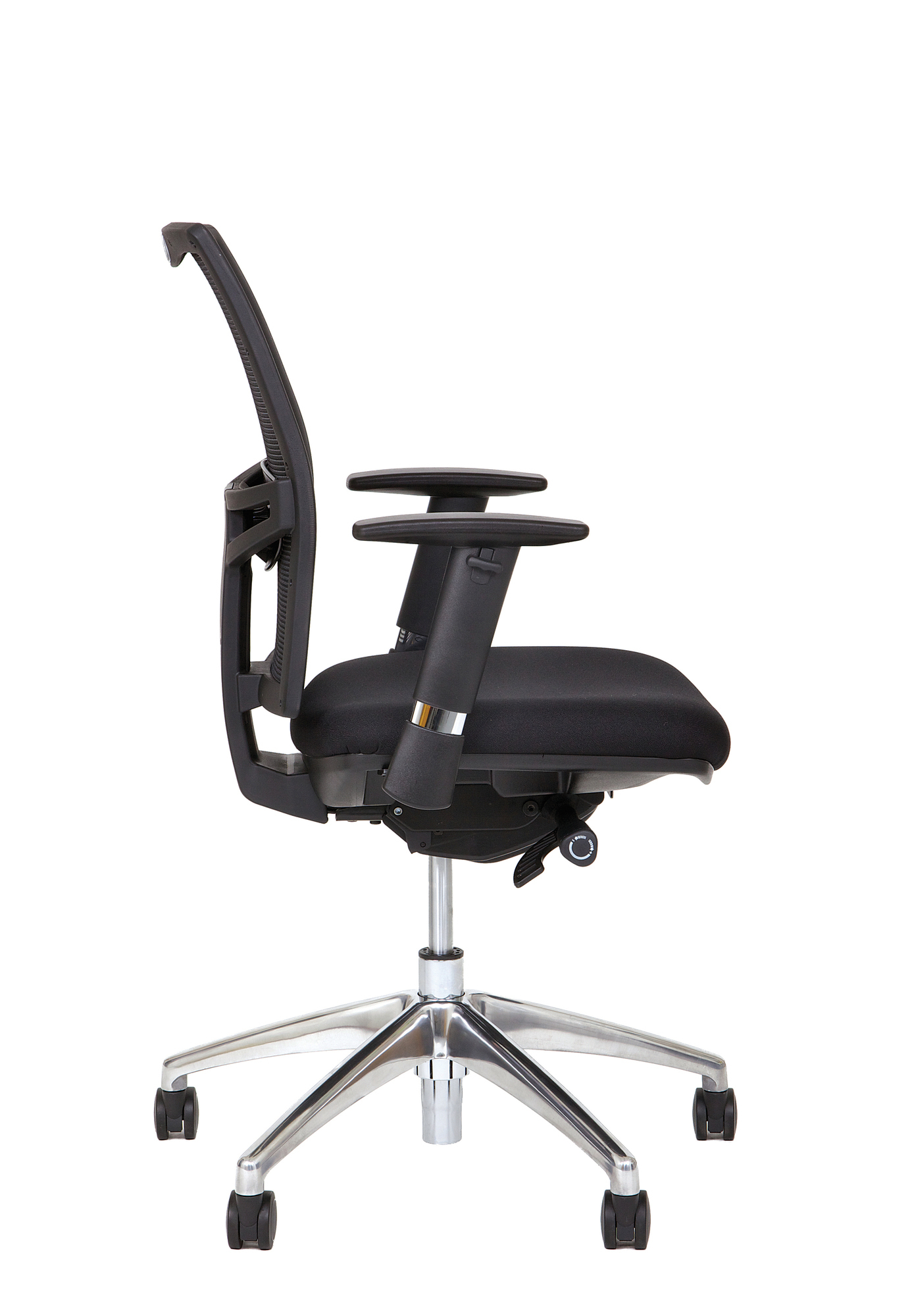 - Höhen-, breiten- und tiefenverstellbare schräge Armlehnen, ausgestattet mit weichen PU-Auflagen