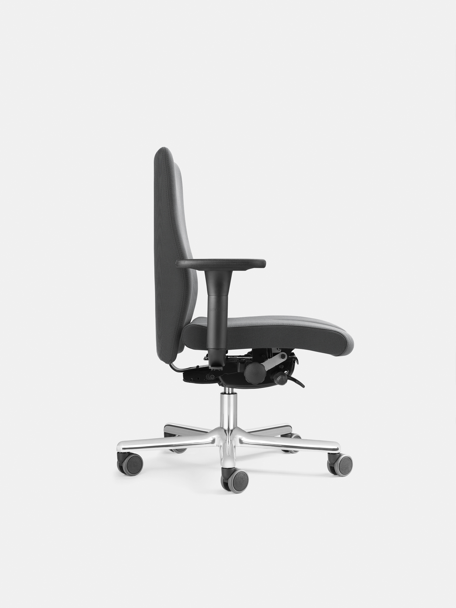 Neben den Sitzflächenhälften ist natürlich auch die Sitzhöhenverstellung stufenlos möglich. Die Rückenlehnenhöhe ist in acht verschieden Positionen auf individuelle Anforderungen einstellbar. Der ergonomische Muldensitz sorgt für zusätzlichen Komfort. Dieser Arthrodesenstuhl überzeugt sowohl durch seine durchdachten ergonomischen Details als auch durch gradliniges Design.