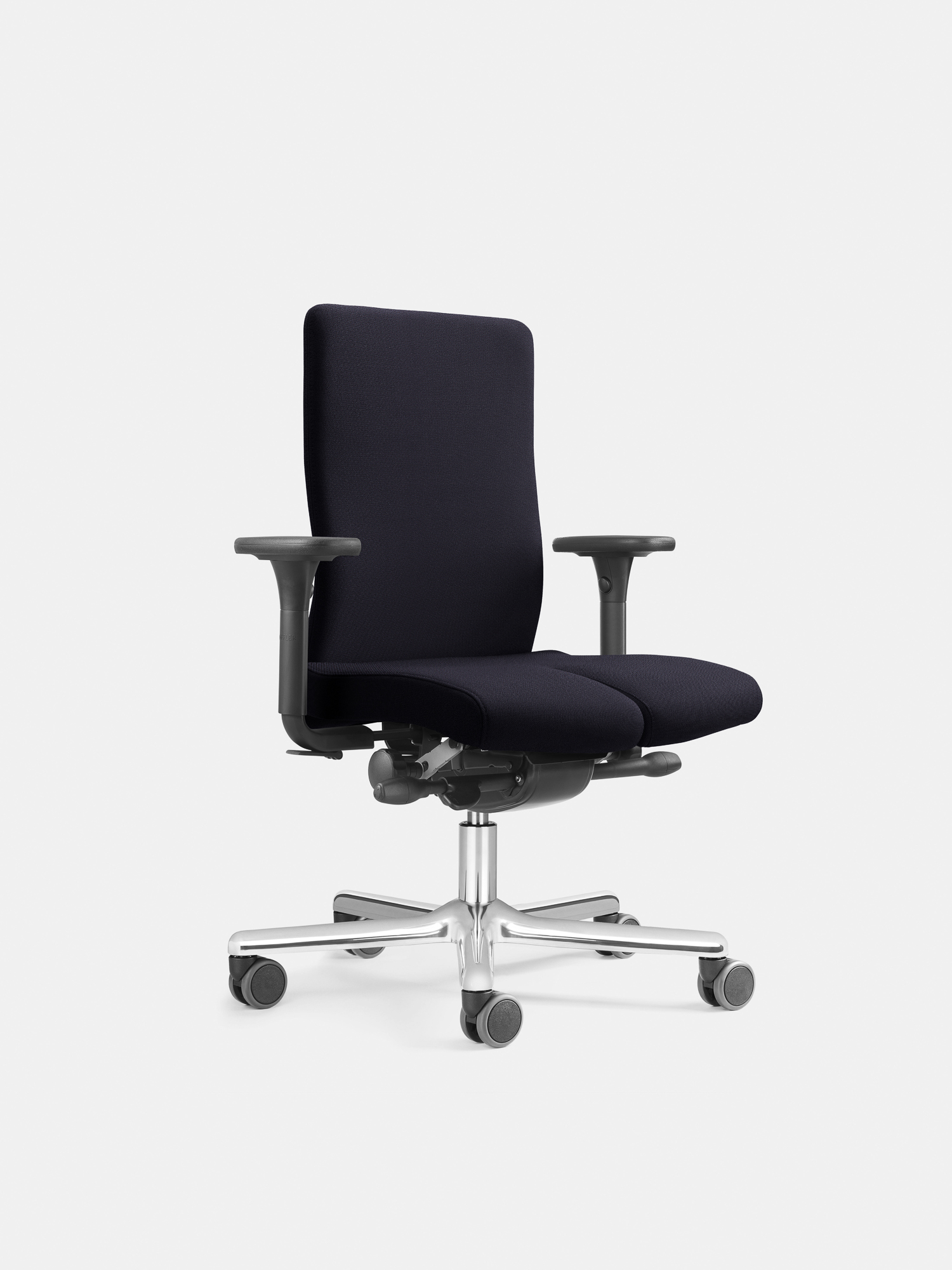 Der LÖFFLER+ Arthrodesensitz Bürostuhl ist extra für Menschen mit eingeschränkter Beweglichkeit in Hüfte und Knie konzipiert und für diese besonders komfortabel. Ein Arthrodesenstuhl muss eine besondere geformte Sitzfläche besitzen, die im vorderen Bereich geteilt sein sollte, um den Druck auf den Oberschenkel zu mindern und die Gelenke, mit eingeschränkter Beweglichkeit zu schonen. Der LÖFFLER+ Arthrodesensitz Drehstuhl verfügt deshalb über zwei unabhängig voneinander neigbar und feststellbare Sitzflächenhälften. So kann ein Sitzflächenwinkel von bis zu 30° erreicht werden und beim Sitzen das Anwinkeln des Beines fast komplett vermieden werden. Das Sitzen wird dank Druckentlastung spürbar erleichtert und der Arbeitsalltag angenehmer.