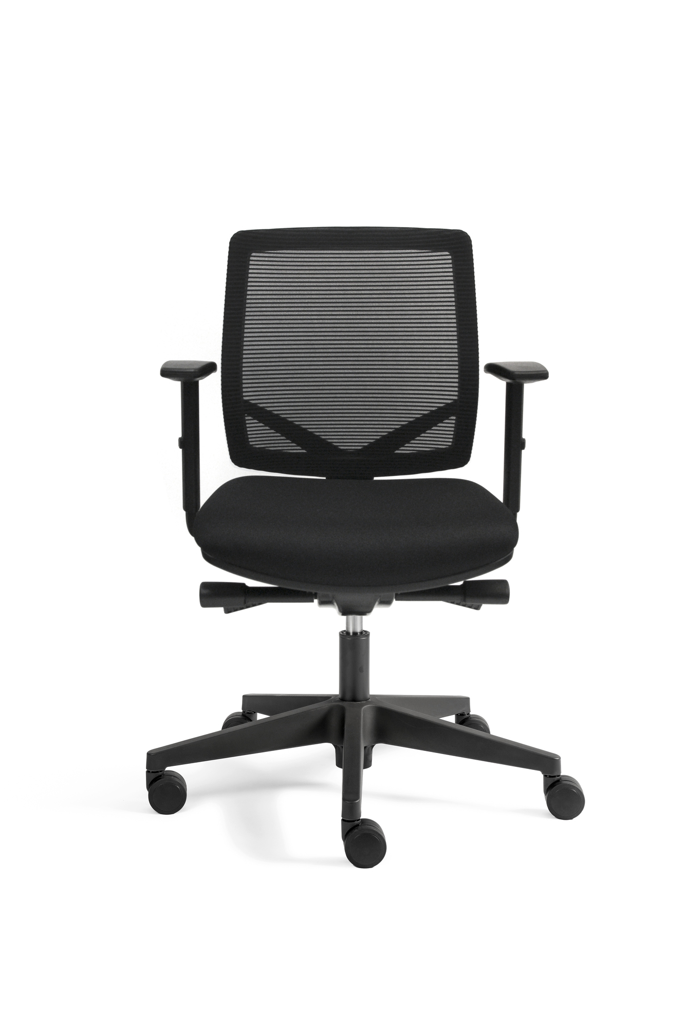 Der Economy-Drehstuhl A300 mesh verfügt über eine Synchronmechanik mit Gewichtsregulierung, eine um 6 cm. verstellbare Sitztiefe und höhen- sowie breitenverstellbare Armlehnen mit Klickverstellung. Der bequeme Sitz und die Netz-Rückenlehne werden durch ein Design-Gestell aus Kunststoff mit schwarzer Gasfeder abgerundet.