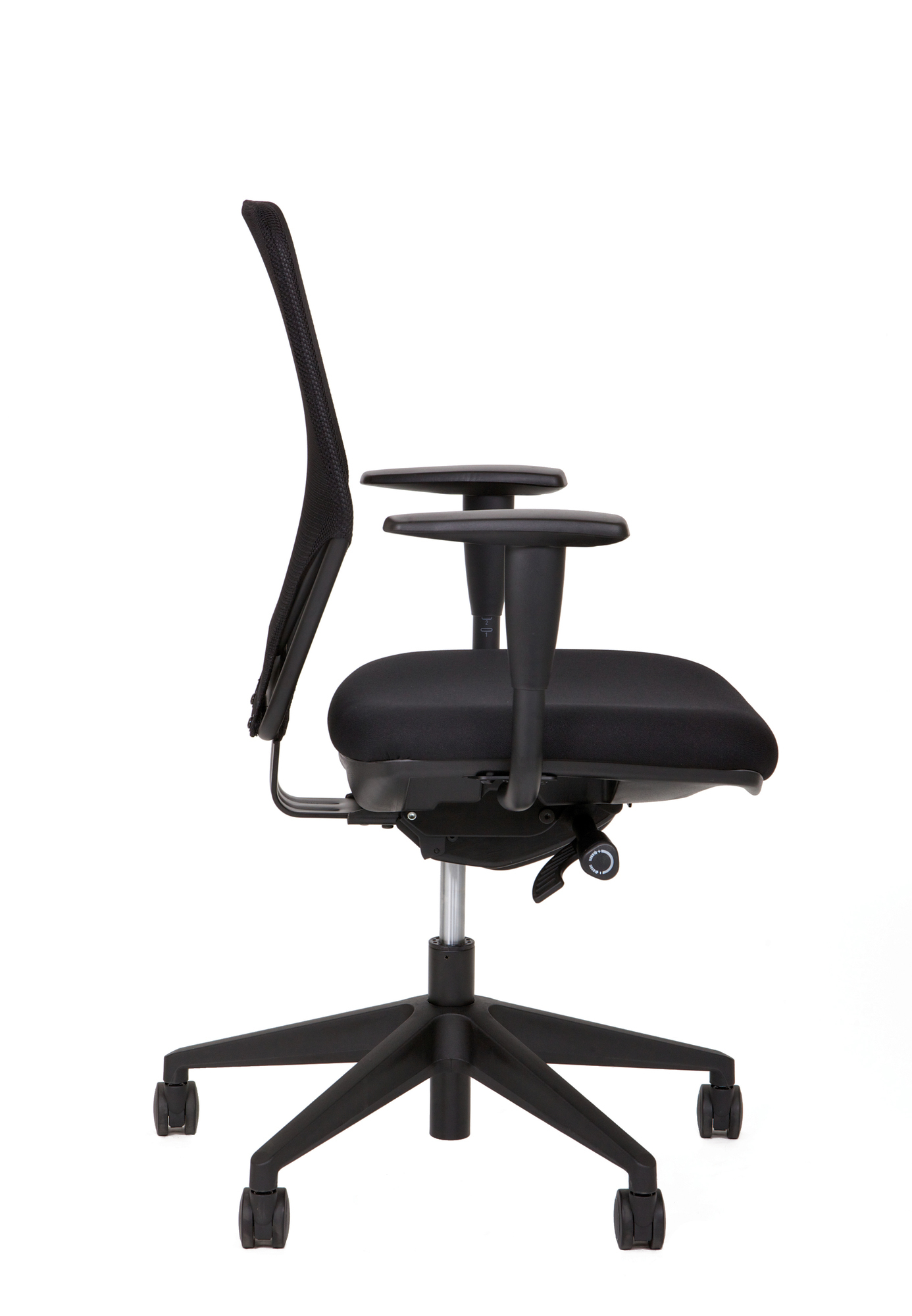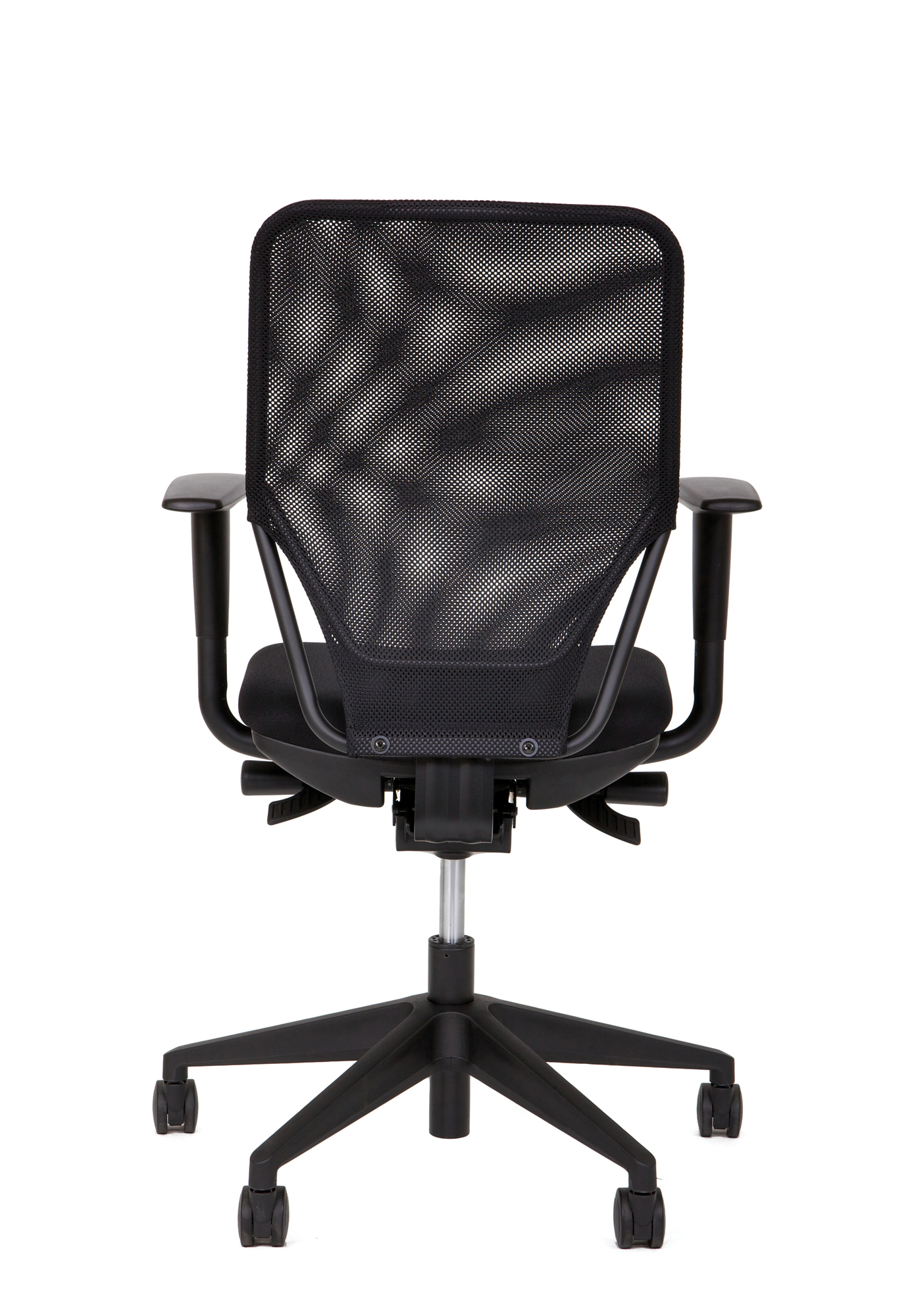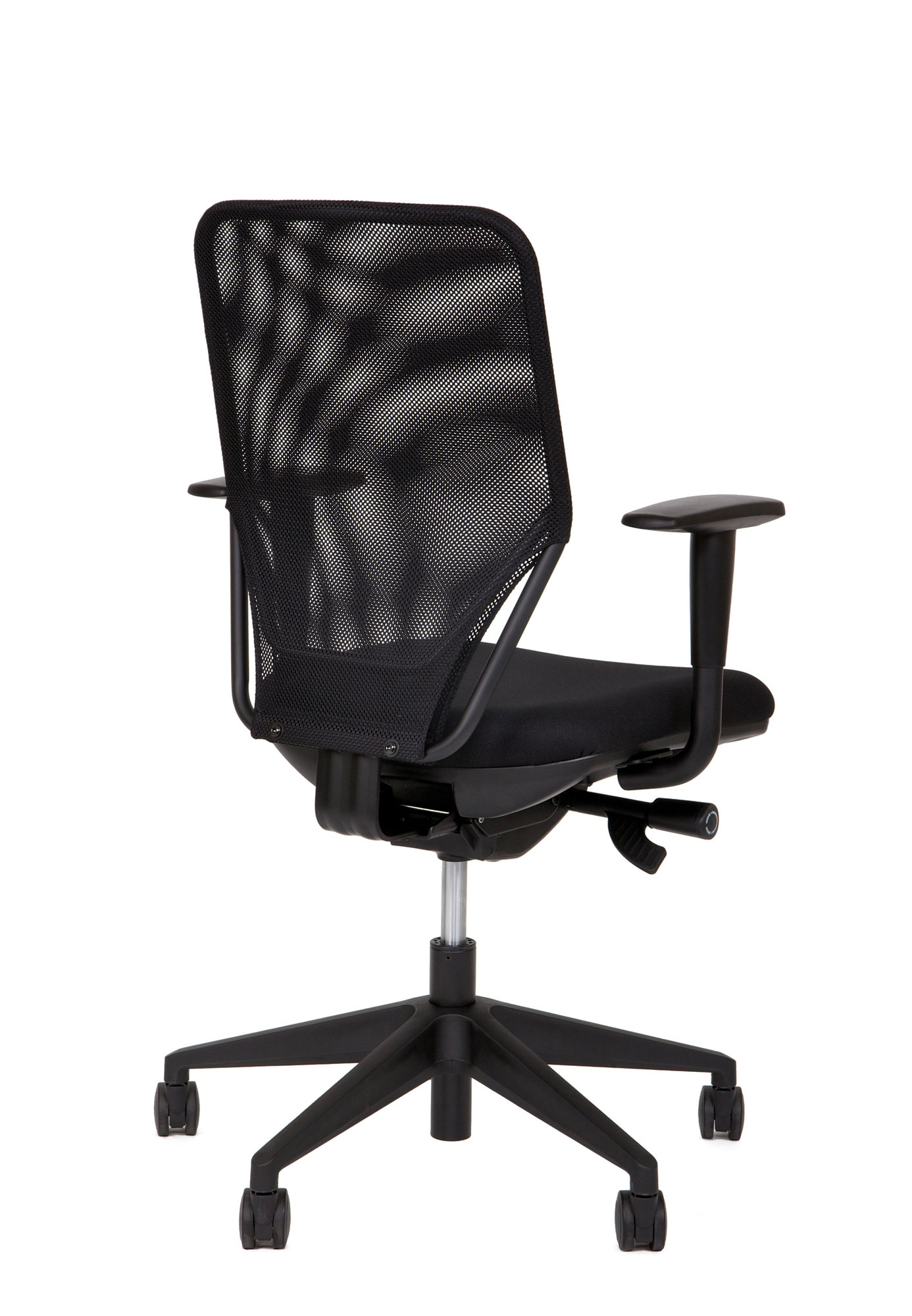 Der Economy-Drehstuhl A330 verfügt über eine Synchronmechanik mit Gewichtsregulierung, eine um 6 cm. verstellbare Sitztiefe und höhen- sowie breitenverstellbare Armlehnen mit Klickverstellung. Der bequeme Sitz und die Netz-Rückenlehne werden durch ein Design-Gestell aus Kunststoff mit schwarzer Gasfeder abgerundet.