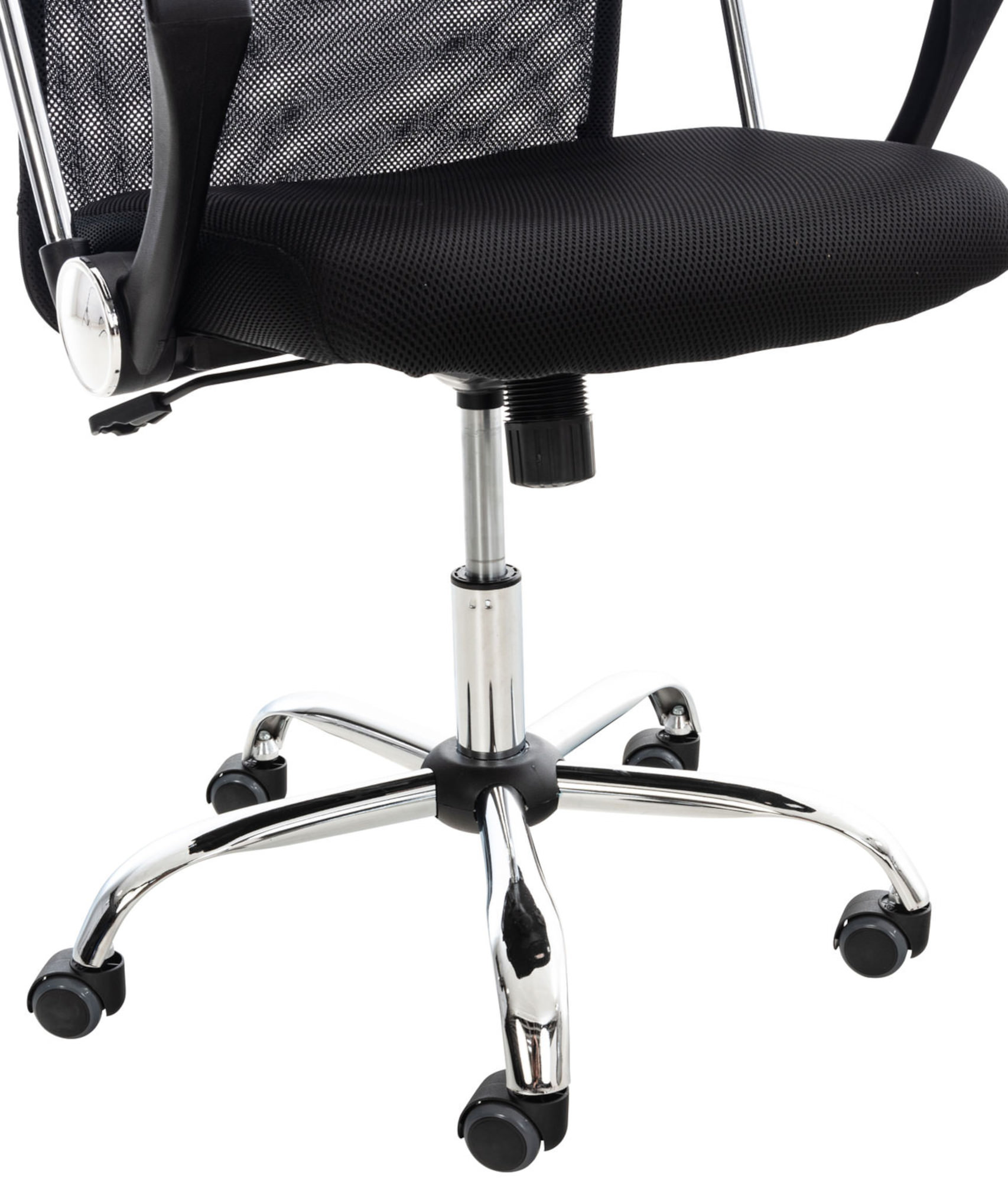 Der Washington XL setzt sich aus einer Kombination von Kunstleder- und Netzbezug zusammen. Kunstlederbezüge sind prinzipiell sehr elastisch und steigern daher die Lebensdauer des Sitzbezuges. Netzbezüge der Rückenlehne sind außerdem deutlich atmungsaktiv, was gerade bei hohen Temperaturen eine große Erleichterung sein kann. Das Metallgestell ist verchromt und sehr stabil, für zusätzliche Standsicherheit sorgen die fünf robusten Leichtlaufrollen, mit denen Sie sowohl über Hart- als auch Teppichböden ohne Schwierigkeiten rollen können. Die verstellbare Sitzhöhe und die angenehm gepolsterten Armlehnen ermöglichen ein ergonomisches Sitzen. Die Höhe des Sitzes lässt sich mit dem Hebel ganz einfach stufenlos verstellen.