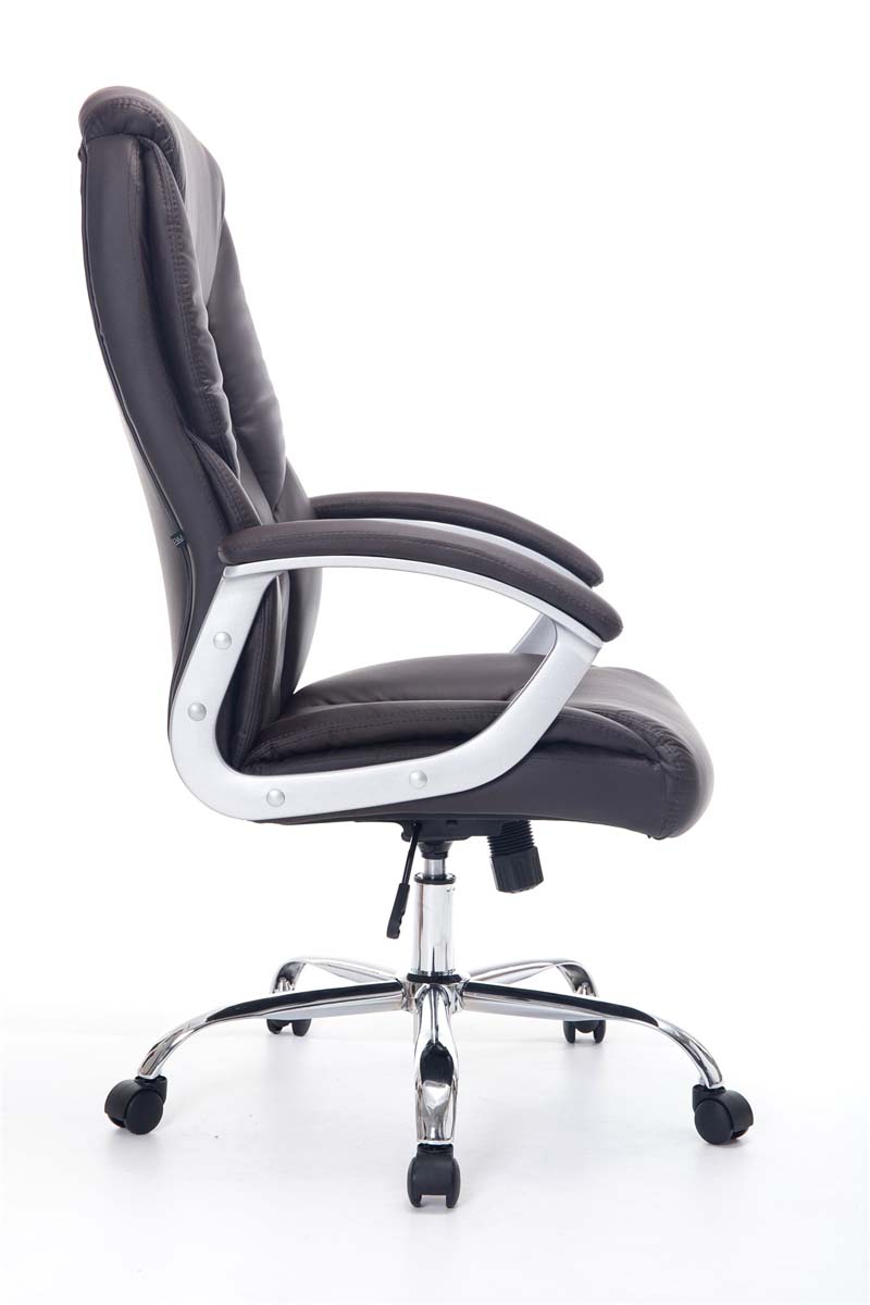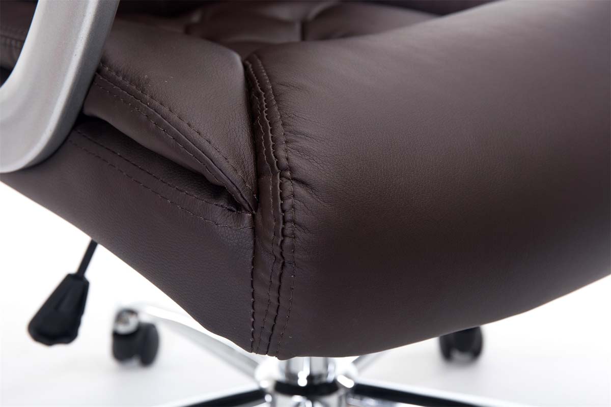 Der Chefsessel Rodeo ist ein besonderer Bürostuhl mit einer qualitativen Polsterung und Kunstlederbezug. Kunstlederbezüge haben den entscheidenden Vorteil, dass sie elastische Eigenschaften vorweisen und sich bei Entlastung wieder glattziehen. Dies sieht nicht nur ansprechender aus, sondern erhöht auch die Lebensdauer des Sitzbezuges. Das Gestell ist aus Metall in Chromoptik und dadurch sehr stabil.