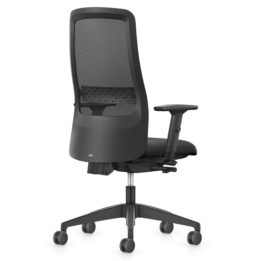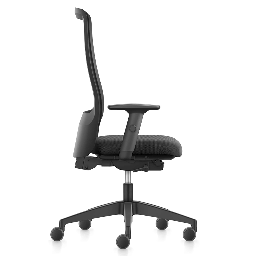 Drehsessel mit hoher Netzrückenlehne, der nicht nur im Design sondern auch in der Funktion keine Kompromisse kennt. Ausgestattet mit einer integrierten Lordosenstütze, Autolift-Mechanik, die sich mit automatischer Gewichtsregulierung auf die Größe und das Gewicht des Nutzers einstellt, einer Sitztiefen- sowie Sitzneigeverstellung und breiten-, -höhen und tiefenverstellbaren Armlehnen mit weicher Auflage ist er ein hoch qualitativer Allrounder, der in nur wenigen Tagen lieferbar ist. Der Klassiker erleichtert den Arbeitsalltag und fördert erfolreiches Arbeiten. Der Stuhl von mehreren wechselnden Personen benutzt werden, ohne dass die Gewichtsregulierung immer wieder neu eingestellt werden muss. Die Rückstellkraft der Synchronmechanik passt sich automatisch an. Gepolstert ist das schnell lieferbare Multitalent in der Designfarbe graphitschwarz.