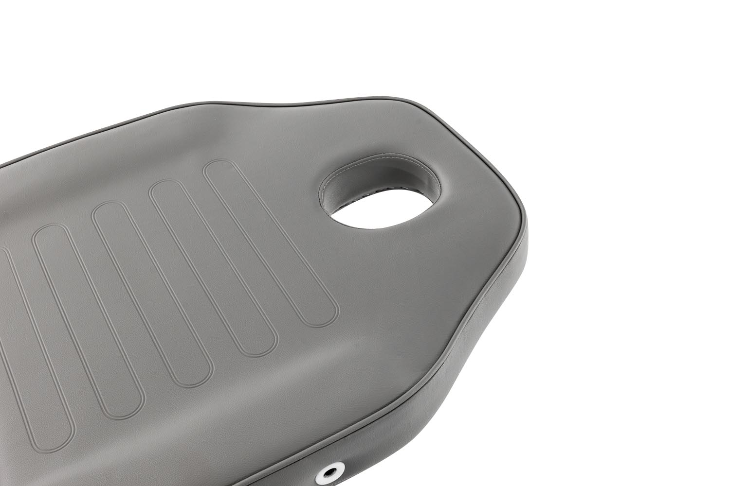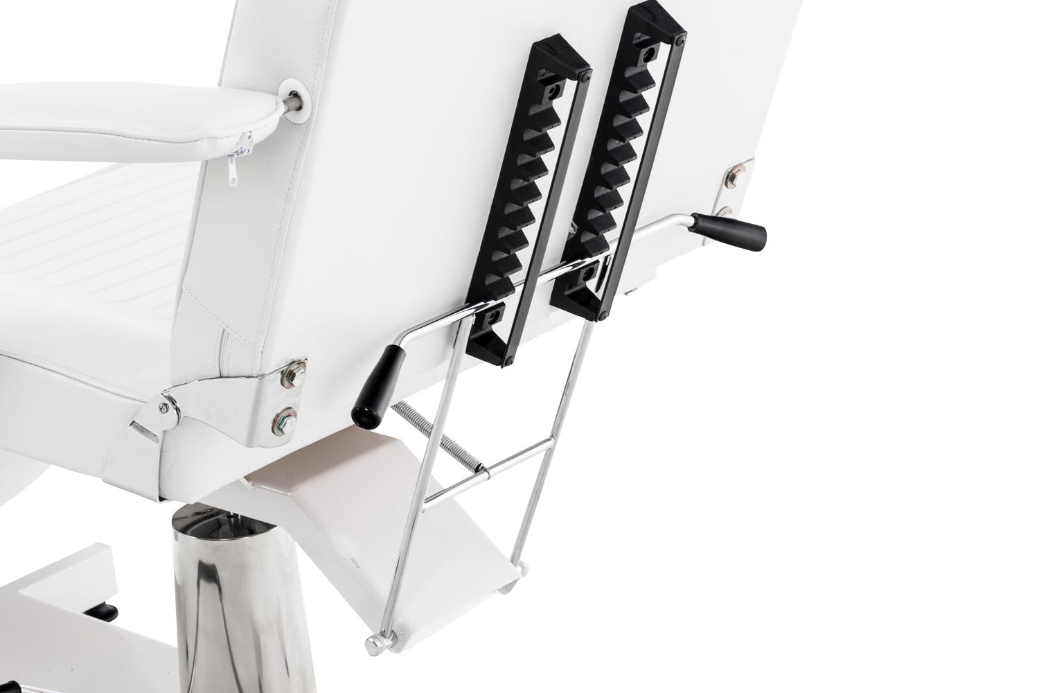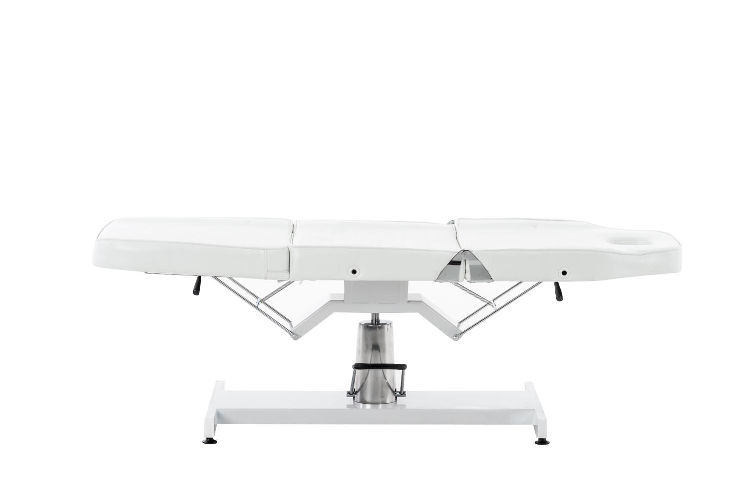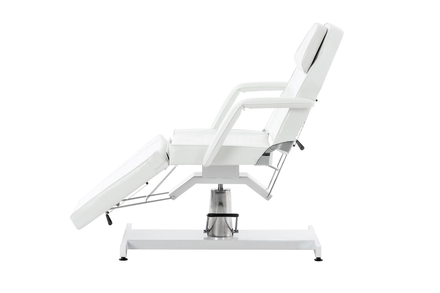 Die hydraulische Kosmetikliege Basic sorgt für bequeme Lage bei allen kosmetischen Behandlungen, sei es bei Gesichts-, Dekolleté- oder Ganzkörperbehandlungen. Sie ist mit hochwertigem Feinzellenschaumstoff gepolstert und mit pflegeleichtem Kunstleder überzogen. Der standfeste Fuß besteht aus Metall und ist mit Bodenschonern versehen, die einzeln in der Höhe angepasst werden können um Unebenheiten auszugleichen. Die Höhe der Liege kann hydraulisch über eine Fußpumpe von 60 - 75 cm eingestellt werden. Die Rückenlehne kann komplett zurück geklappt oder bis zu 80° aufrecht gestellt werden. Das Fußteil ist ebenfalls aufrecht oder bis zu 45° nach unten arretierbar. Die Liege kann komplett waagerecht gestellt und auch um um 360° geschwenkt werden. Die abnehmbaren Armlehnen passen sich der Liegeposition an. Unter der ebenfalls abnehmbaren Kopfablage befindet sich eine Gesichtsöffnung, sodass auch Massagen auf dieser Liege bequem durchgeführt werden können.