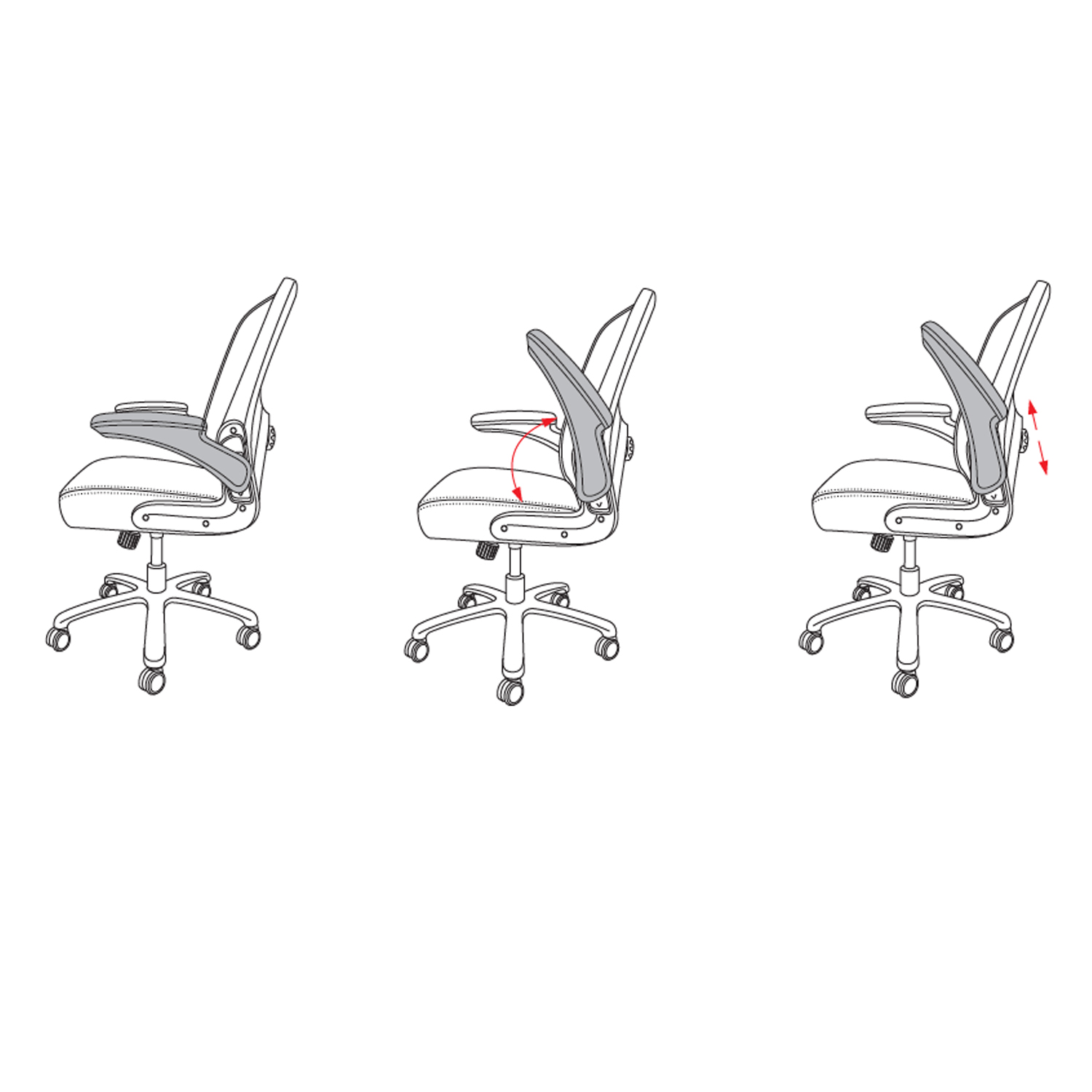 - Eine vorgeformte Wölbung im Lendenwirbelbereich der Rückenlehne unterstützt beim aufrechten Sitzen.