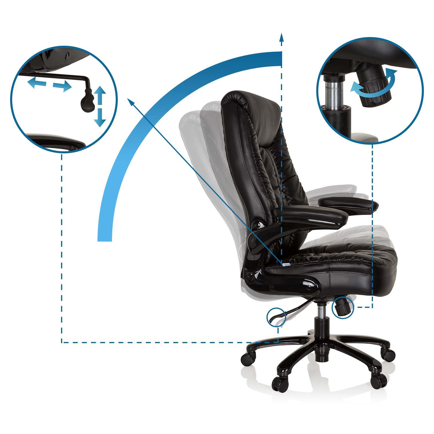 - Die gepolsterten Armlehnen mit Kunstleder-Auflage lassen sich mehrfach in der Höhe verstellen und bei Nichtgebrauch sogar nach oben wegklappen.