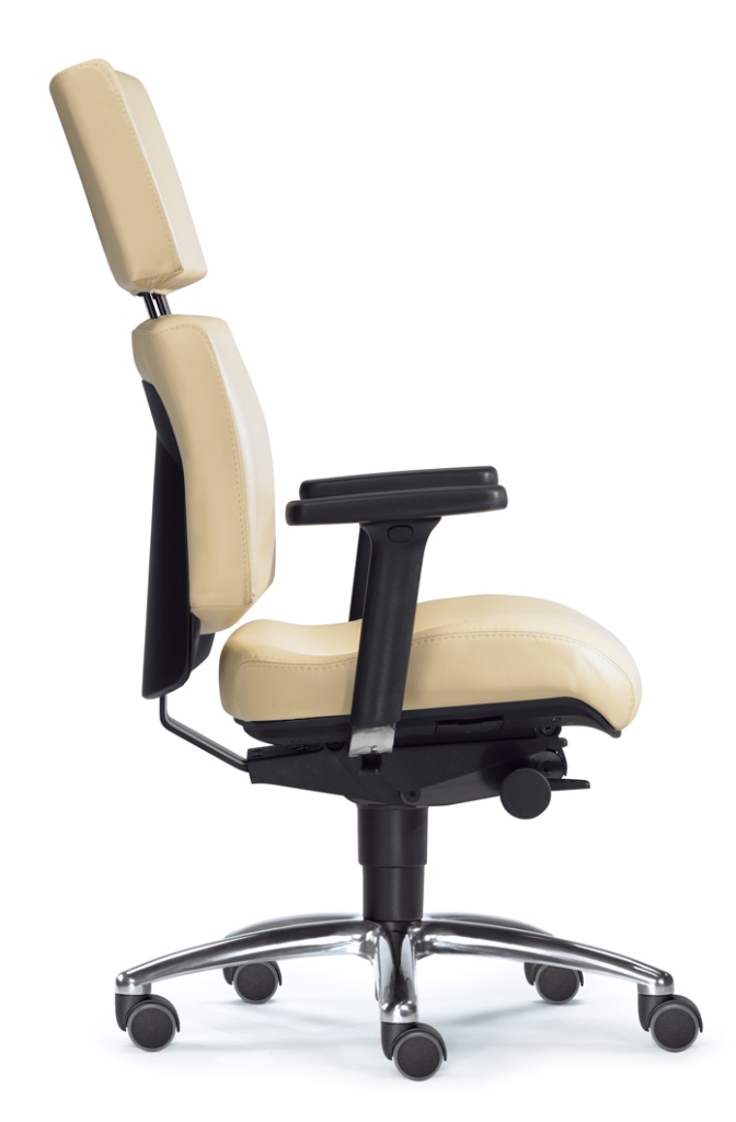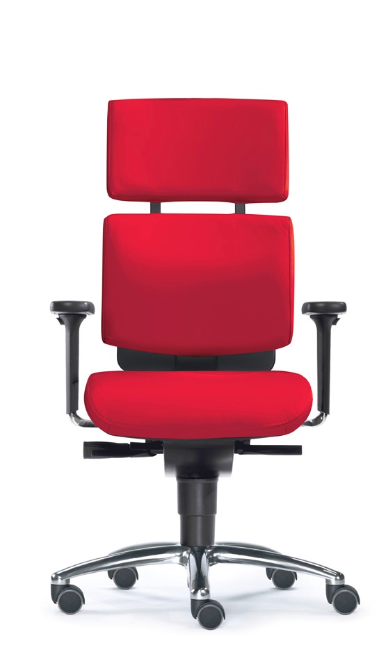 Stilo ES operator mit Polster- oder Netzrückenlehne und Syncro-3D-Balance-Technik. Sitz und Rückenlehne folgen den Bewegungen des Sitzenden synchron im richtigen Winkelverhältnis. Stufenlose, unmittelbar spürbare Einstellung des Rückenlehnengegendrucks (= Tension) für ca. 50–125 kg Körpergewicht. Synchronbewegung stufenlos arretierbar mit zusätzlicher automatischer Neigung des gesamten Stuhloberteils nach vorn (bis -8°) und zu beiden Seiten (+/- 6°). Optional mit fixierbarer 3D-Balance-Technik. Optional: Fußkreuz Aluminium poliert