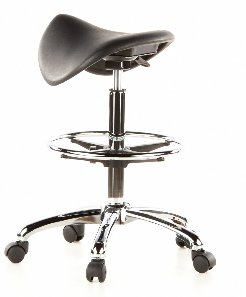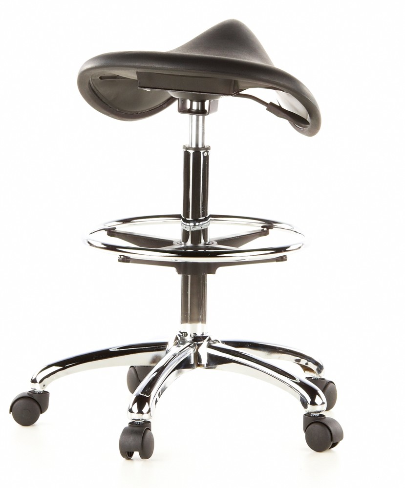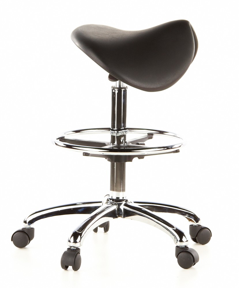 Das Design dieses extravaganten Arbeitshockers ist an einen Sattel angelehnt. Lassen auch Sie sich vom völlig neuen Sitzgefühl dieses Sattelstuhls überzeugen. Der Sattelhocker sorgt für einen wesentlich größeren Sitzwinkel von Ober- und Unterschenkel, wodurch deutlich weniger Druck auf Oberschenkel, Gesäß und Rücken entsteht.