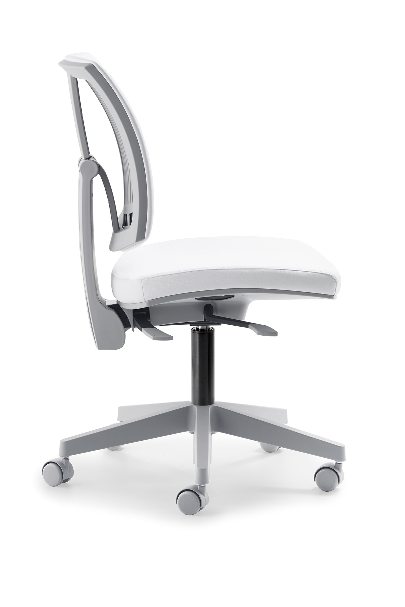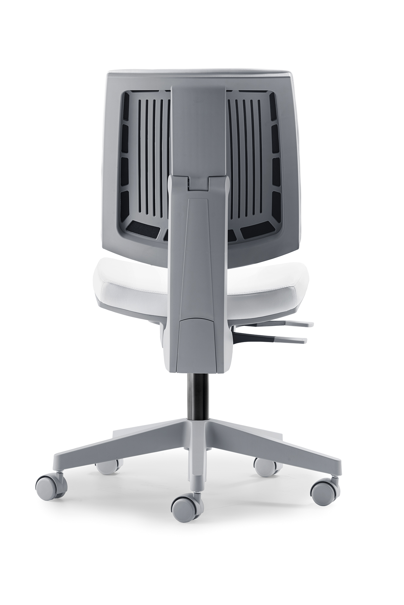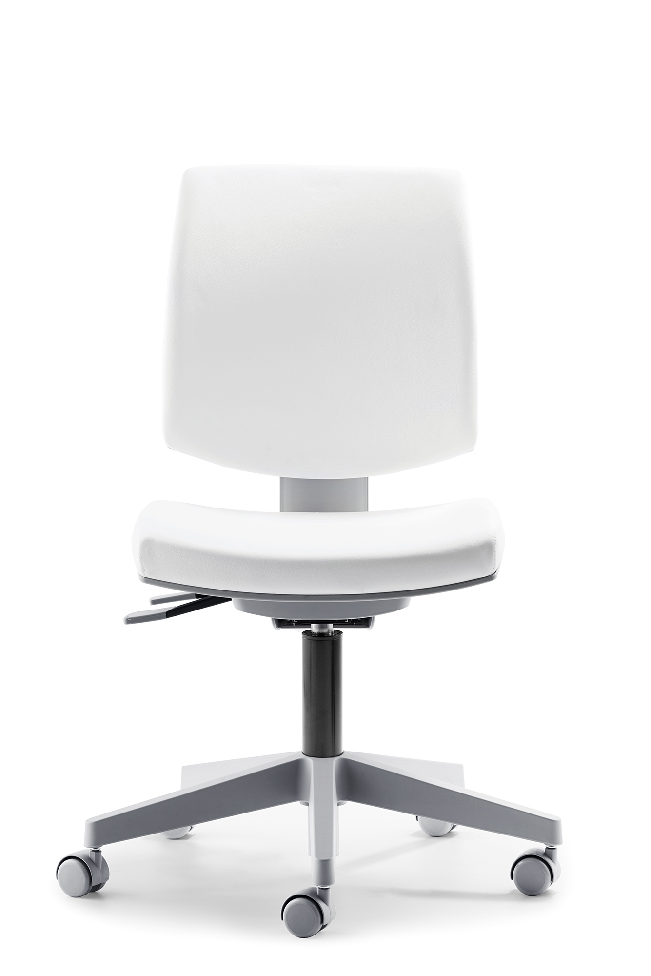 Der myFLEXO von Mayer ist ein flexibler Drehstuhl mit grauem Gestell und bis 150kg Körpergewicht geeignet.
