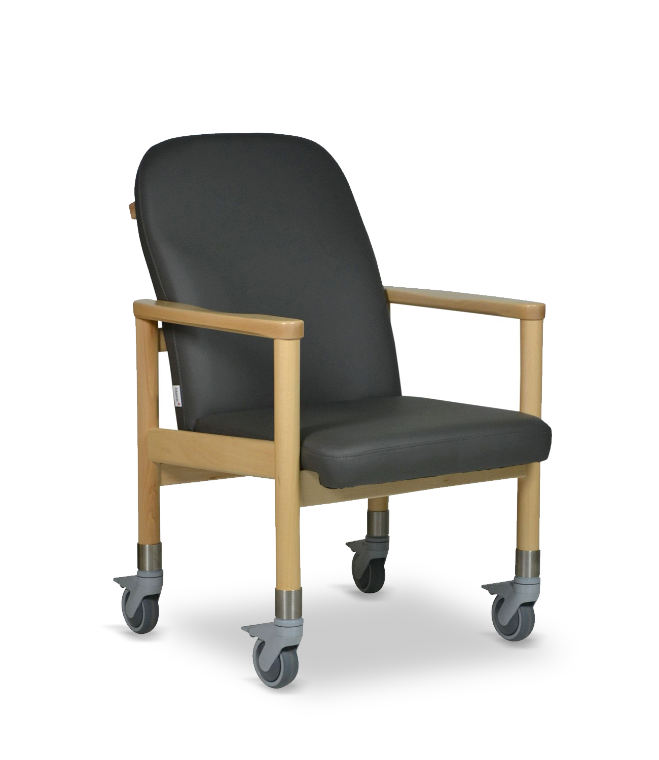 Der Seniorenstuhl Karby ist ein sogenannter "Trippelstuhl". Ein Trippelstuhl wird ganz leicht und ohne fremde Hilfe durch das Bewegen der Beine fortbewegt. Der Sitzende "trippelt" dann den Stuhl vorwärts. Als ein Holzstuhl mit 4 schwenkbaren Rollen und Bremsen bietet er Unabhängigkeit und echte Hilfe im Pflegealltag, z. B. in Tagespflegeeinrichtungen und geriatrische Einrichtungen, aber natürlich auch zu Hause. Die Sitzhöhe kann zwischen 46 und 50 cm. individuell gewählt werden, sodass der Pflegestuhl genau zum Sitzenden passt und dieser leicht durch die eigene Bewegung der Füße seine Mobilität bestimmen kann.