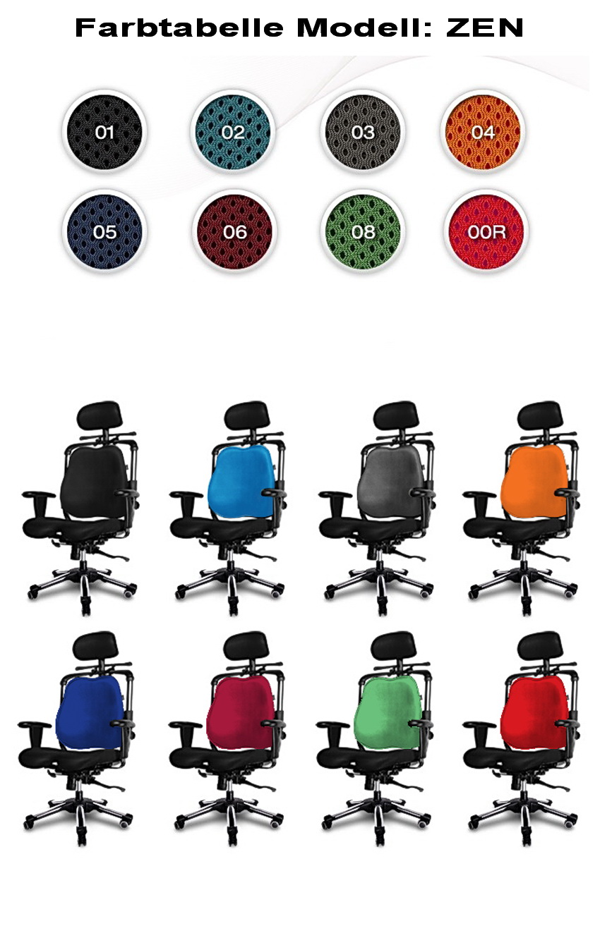 Der Stuhl ZEN besticht besonders durch die Kombination hoher Funktionalität mit anwenderfreundlicher Bedienung. So verfügt er über eine zweigeteilte Sitzfläche, die sich dank des Harastuhl Originalmechanismus vertikal bewegen lässt und sich dem Becken des Sitzenden anpasst. Der Stuhl verfügt über eine ausgeprägte Unterstützung im Lumbalbereich. Dies unterstützt eine gesunde Haltung beim Sitzen und entlastet Ihre Wirbelsäule.