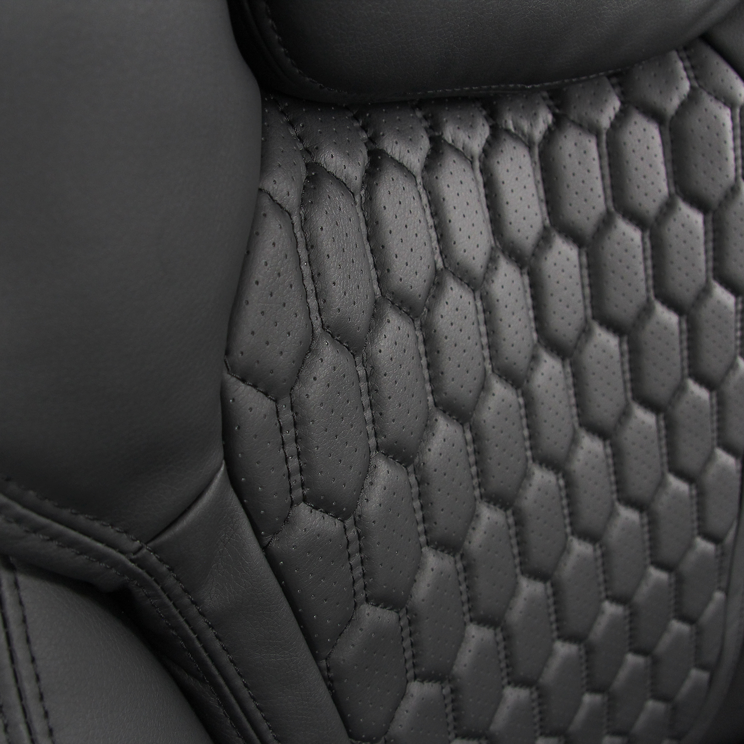 - Aufwändig gesteppte Nähte, sowie der Bezug aus hochwertigem Kunstleder unterstreichen das edle Design.
